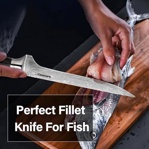 Sharp Edges: The blade of fish knife has been honed with 15-degree cut, demonstrating minimal slicing resistance and exceptional performance. This versatile trimming knife with water ripple is an economical tool suitable for skinning and boning meat with its flexible blade, providing the most comfortable cooking experience.