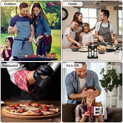 Gravity-sensitive one-hand operation:Electric salt and pepper grinder set, gravity-sensitive grinding, without pressing a button, just flipping the grinder, you can get freshly seasoned easily. One pepper mill, one salt grinder, a set to solve the problem of seasoning grinding.