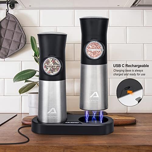ABLEGRID Gravity Electric Salt and Pepper Grinder Set,Rechargeable Automatic