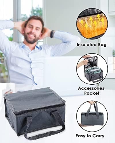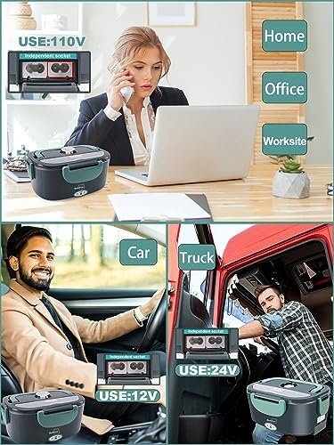 [3-in-1 Electric Lunch Box] — Instead of eating unhealthy fast food and cold sandwiches every day, This electric heated lunch box supports 110V home/office +12V car and 24V truck use. car / trucker drivers can eat home cooked warm meal healthily on the go, construction worker and office workers can enjoy hot meal at construction site or in office
