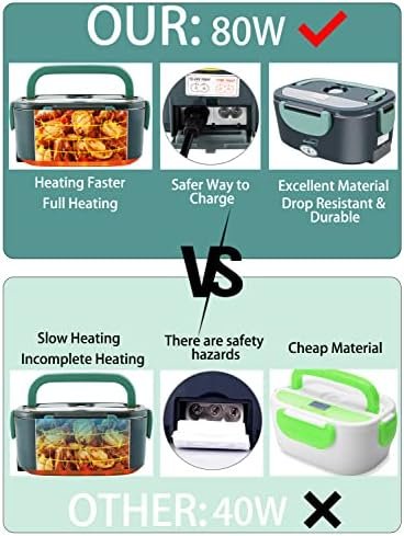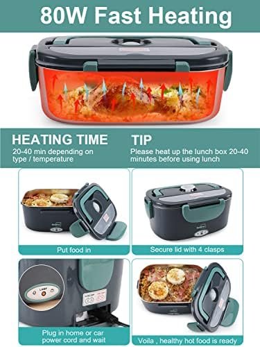 [80W Fast Heating] — It adopts the latest designed PTC constant temperature heating, and uses 80W high power.Low-consumption and high-efficiency thermal cycle, heating your lunch at the fastest speed, while maintaining the moisture and freshness of the food. No need to eat unhealthy sandwiches and fast food anymore. You can eat fresh and warm home-cooked food in the shortest time office, and construction site! A healthy way of eating
