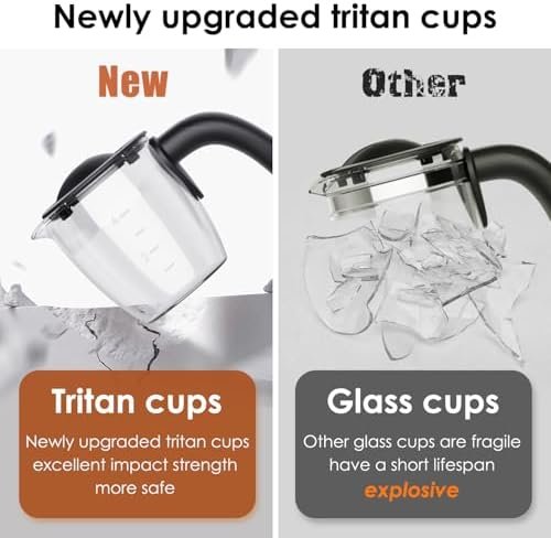 Durable Tritan Cup: Compared with ordinary glass cups, we come with high-quality, BPA-free Tritan cups, which are shatterproof, safe, and lightweight to maintain the pure taste of coffee in daily use. Plus, the easy-pour Tritan cup has clear graduation markings to deliver the perfect amount every time
