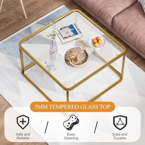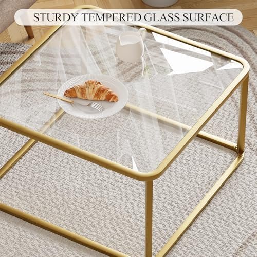 Coffee Table Glass, Minimalist Square Tables for Living Room, Modern Center