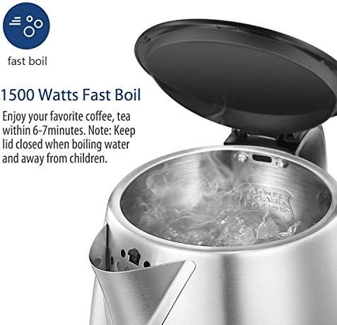FAST BOIL: The 1500W heating power provides fast and efficient boiling. This electric hot water kettle has concealed heating elements, making it quick and safe to use.
