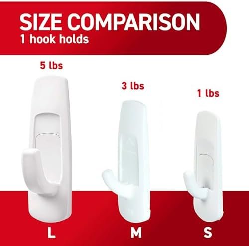 Command White Large Utility Hooks let you decorate and organize how you want, when you want, without damaging your walls and surfaces. A great home improvement item, these no damage wall hooks stick on a variety of smooth surfaces without leaving holes, marks or sticky residue. Use these hanging hooks to hang clipboards, brushes, dog leashes, kitchen utensils, home decor and accessories. Simply mount these wall adhesive hooks on painted walls, finished wood, painted concrete cinder blocks, laminate, glass, metal and tiles and enjoy the damage free hanging of your favorite decorations and organizers. Perfect for home renovators and college students, use these wall hooks for hanging decorations and organizers in your home, office, apartment or dorm room to elevate the appearance of your living or working space without tools. Directions are included; follow the directions closely to use the wall hangers as intended. A clever decorating and organizing solution that doesn’t damage surfaces, these large tool free wall hangers will help you fearlessly change your space. One package contains seven white utility hooks and 12 large adhesive strips. Each single utility adhesive wall hook can hold up to 5 pounds. Decorate, organize and celebrate damage free with Command.