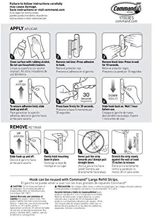EASY CLEAN REMOVAL: Lightly hold the top of the wall adhesive strips and slowly pull straight down towards the floor to remove the 3M Hooks and prevent damage of walls and surfaces; reuse your hook and hardware again by purchasing refill strips