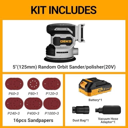 【POWERFUL PERFORMANCE】DEKOPRO orbital sander is assembled with a powerful DEKO motor that can reach speeds of up to 13,000 RPM, allowing it to provide smooth performance in a variety of sanding applications.