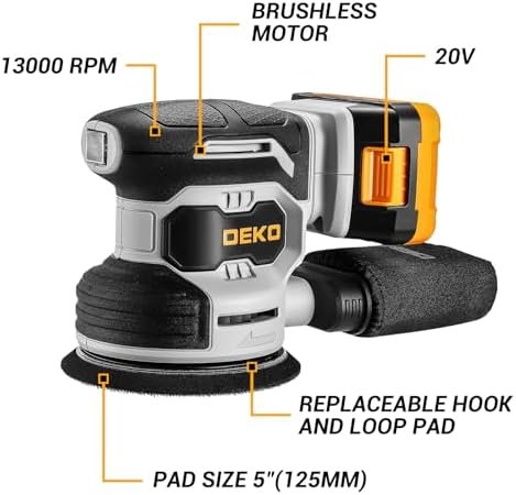 Cordless Orbital Sander: DEKOPRO 20V Random Orbit Sander, 5inch Power Palm
