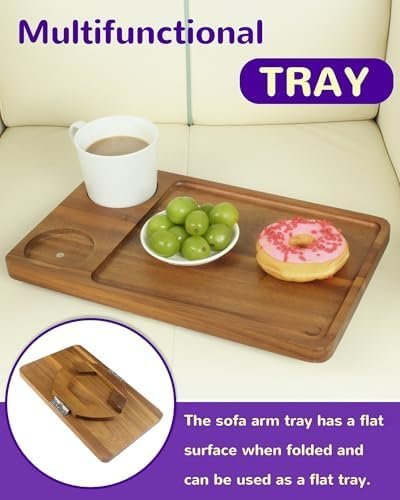 Dual-Use Tray with Spring-Hinged Arms : Transforms instantly from a stable couch arm table to a flat tray. Spring-loaded arms grip sofa arms securely (no wobble), while closed arms let you use it on beds, carpets, or outdoors.