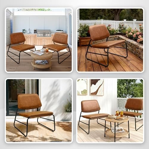 【Leather Upholstery】 – Upholstered in smooth, wipeable, waterproof leather, this piece is soft to the touch. With natural vintage crack, this sling chair is retro and unique. Its easy-clean PU leather maintains a sophisticated sheen for years—just wipe with a damp cloth to preserve like-new elegance effortlessly