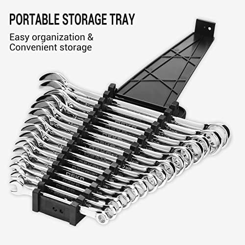 15PCS METRIC WRENCHES: 15-piece metric wrench sets that meet ANSI standard includes 8mm, 9mm, 10mm, 11mm, 12mm, 13mm, 14mm, 15mm, 16mm, 17mm, 18mm, 19mm, 20mm, 21mm, 22mm. Each wrench has engraved size markings for easy identification.