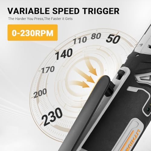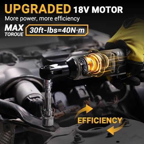 【High-Performance】DEKOPRO cordless ratchet wrench is equipped with a 12-volt motor. It delivers a maximum torque of 30 ft-lbs at 230RPM and comes with a variable speed trigger for excellent control.