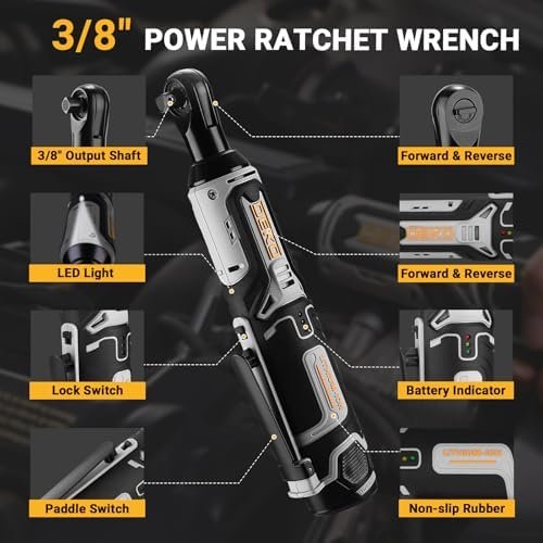 DEKOPRO Cordless Ratchet Wrench 3/8″ Cordless Electric Ratchet Drive, 12V Power