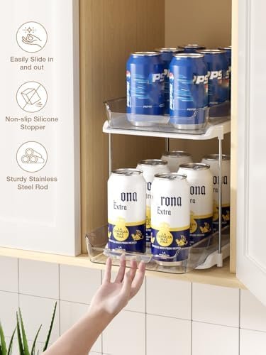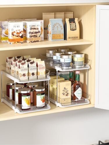 Stackable Pantry Storage Organizer: What sets this pull out cabinet organizer apart is that you can stack 3 at a time according to space needs, which means it is a must-have space saver! it is very useful for organizing to hold spice jars, medicines bottles, beverages, canned goods, grab-and-go snacks, and even a variety of health/beauty aides, and small items.