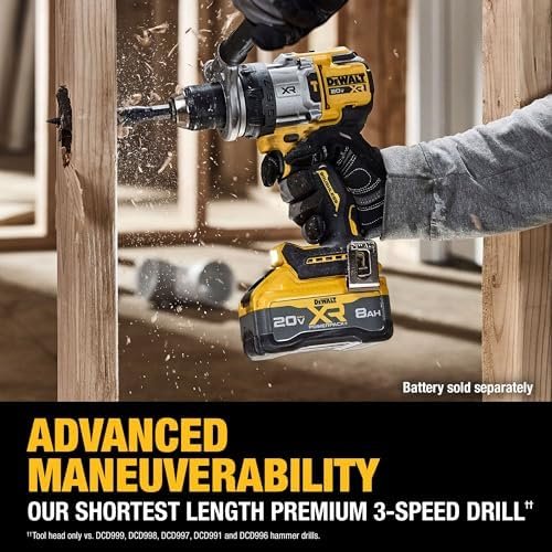 Advanced maneuverability – access and maneuver in tight areas with the shortest length DEWALT premium 3-speed drill.
