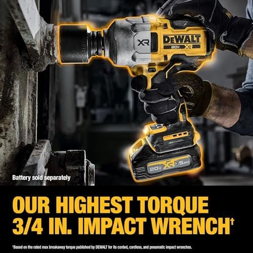 Complete tough jobs utilizing the power of the 20V MAX* XR 3/4″ High Torque Impact Wrench. Our highest rated max torque 3/4″ impact wrench** delivers up to 102% more torque***, making it ideal for heavy-duty applications. This tool features a glass-filled nylon housing to help protect against oils & harmful solvents. Other features such as PRECISION WRENCH mode, which helps prevent overtightening and fastener run-off, as well as a 4-mode push button switch, to easily change speeds and LED brightness, are included to help maximize efficiency and productivity on the jobsite. Battery sold separately.