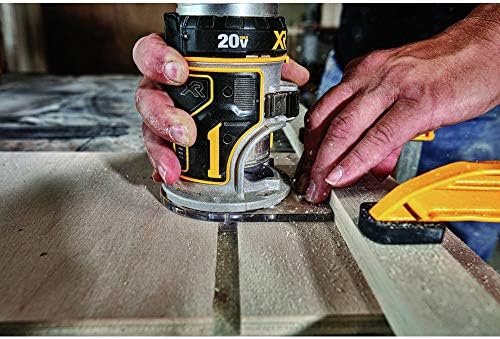 The 20V MAX* XR cordless compact router provides power like a corded compact router while providing the convenience of a cordless tool. The plastic fixed base and dual LEDs help illuminate the work surface and provide superior bit visibility. This cordless router is equipped with variable-speed control for optimal bit speed in each application. The release clamp allows for quick and easy bit and base change.