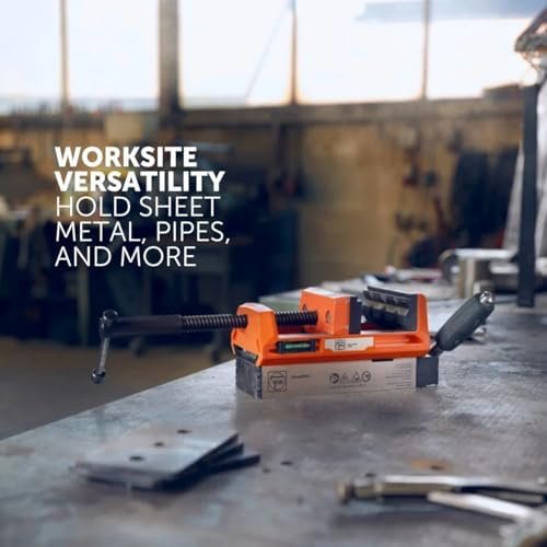Adjustable Clamping Range for Versatile Applications – Features a 4-1/4″ clamping range and 4″ jaw width, accommodating various materials, including sheet metal and pipes, suitable for diverse tasks in workshops and job sites.