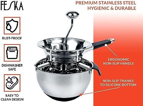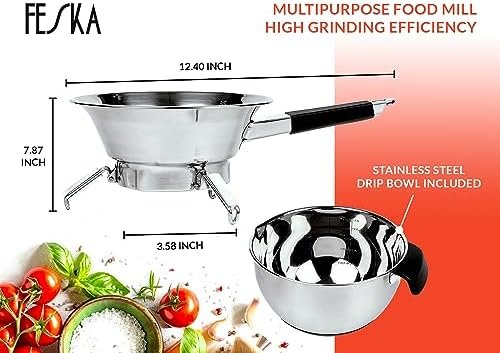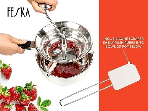 FESKA – Food Mill Stainless Steel with 3 Grinding Discs & Silicone Scraper