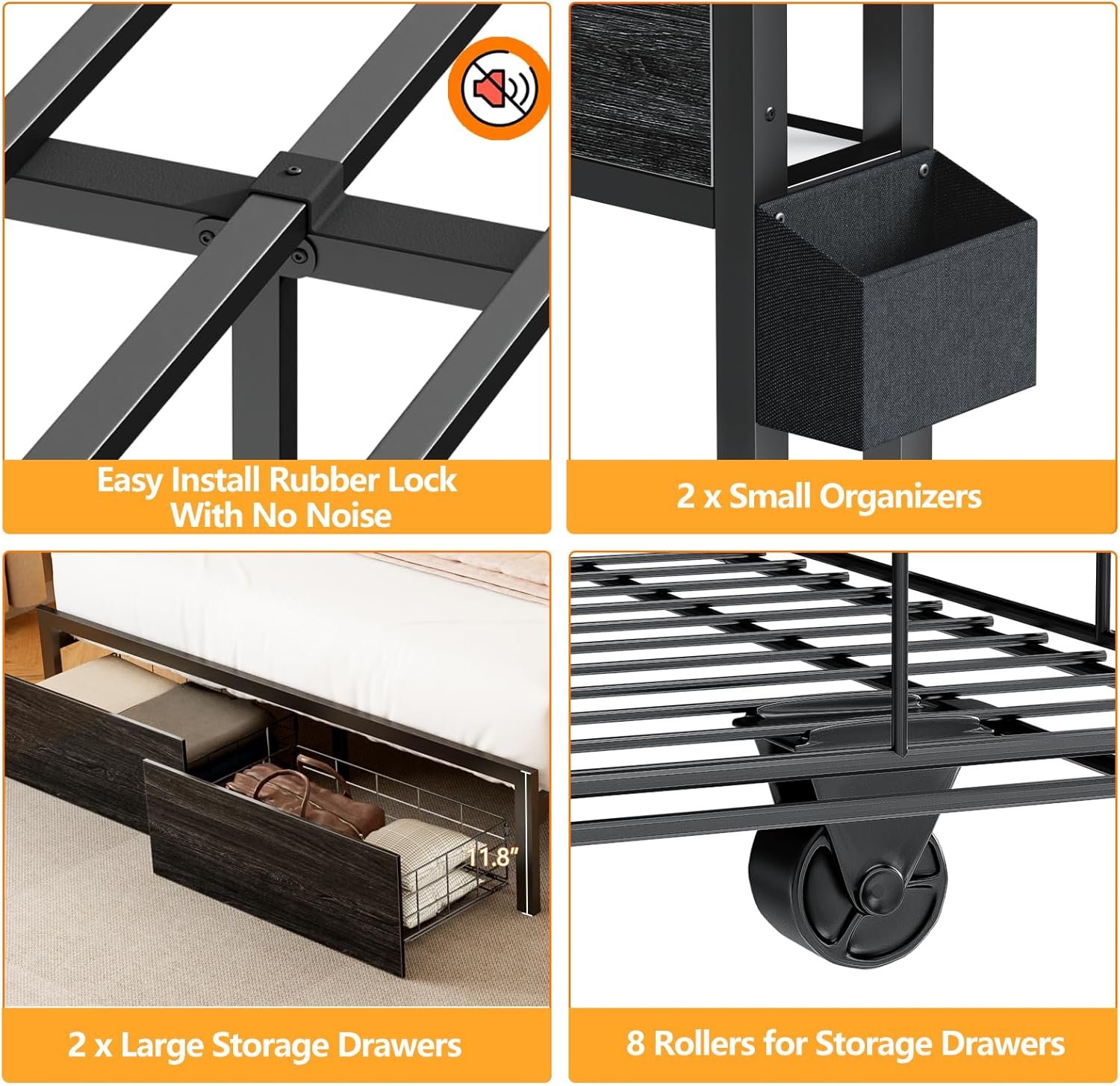 【Under-bed Storage Drawers with Pulleys】: Equipped with two storage drawers on pulleys, this bed provides an efficient solution for keeping your belongings neatly organized. Store extra bedding, clothing, or seasonal items out of sight yet easily accessible whenever you need them. The pulleys on the drawers allow you to effortlessly pull out drawers and also protects the floor from scratches.
