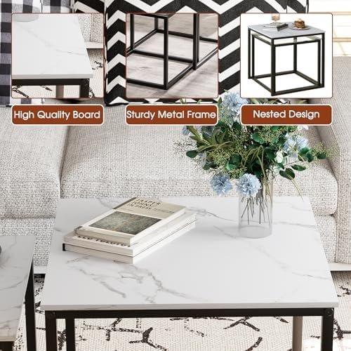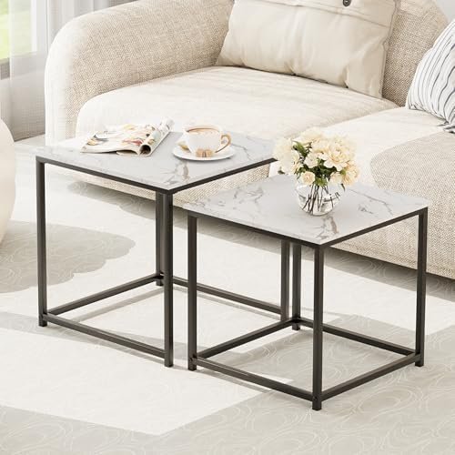 Garden 4 you Coffee Table Set of 2, Modern Faux Marble Nesting Table, Metal