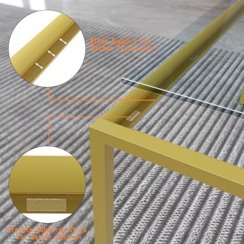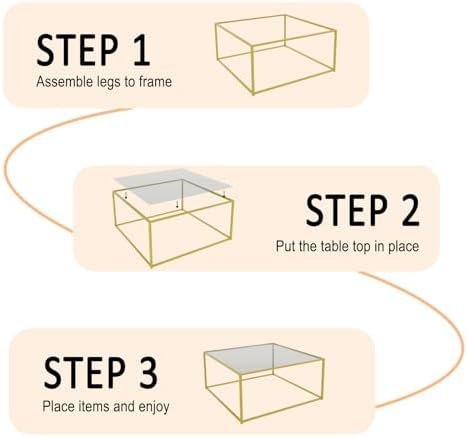 Easy Assembly:Only need 5 minutes to set your coffee table and use right away. Tempered transparent glass with gold square metal frame without extra decoration, minimalist lines will never go out of style.