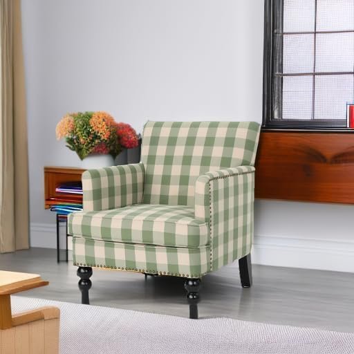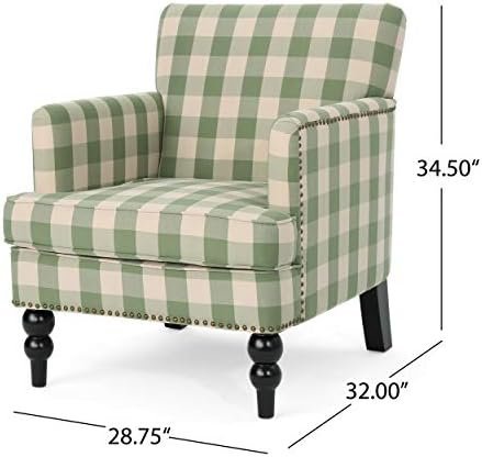 Great Deal Furniture Eve Tufted Fabric Club Chair, Green Checkerboard