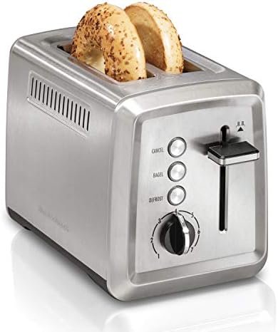 The Hamilton Beach® Modern 2 Slice Stainless Steel Toaster with extra-wide slots has advanced features to easily toast any bread. Includes bagel, defrost, and cancel options, plus an easy-to-grip shade selector with 7 toast shades.