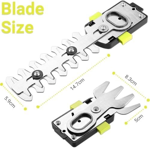 Sharp Blades: The handheld hedge trimmer is fitted with sharp, durable blades that provide excellent trimming results for lawns, hedges, or small shrubs in the courtyard. The blades measure 5.79 inches in length for hedge trimming and 3.26 inches in width for grass trimming