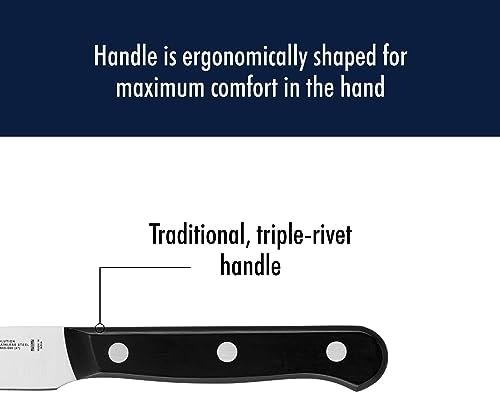 Since 1895, Henckels has been making high quality, everyday knives at an exceptional value. Fabricated from high-quality stainless steel, the single-piece, precision-stamped knife blades are lightweight without sacrificing strength and durability. Along with the ergonomic, traditional triple-rivet handle, enjoy maximum maneuverability and fatigue-free cutting. Honed for long-lasting sharpness, the fine-edge blades boast precision cutting. Curved for comfort, the break-proof, triple-rivet handles are pleasant to grip, giving you the control you need to slice through tougher cuts with ease.