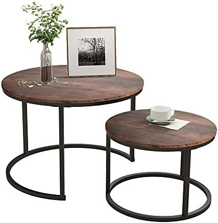 HOJINLINERO Round Coffee Table,Nesting Coffee Table Set of 2,Center Tables for