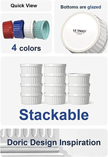 LE TAUCI Ramekins 4 OZ Oven Safe, Creme Brulee Ramekins, Pudding Custard Cups