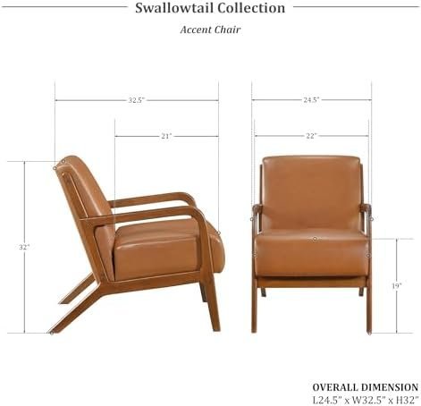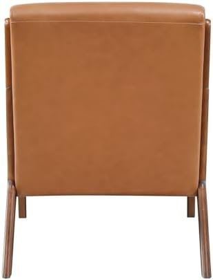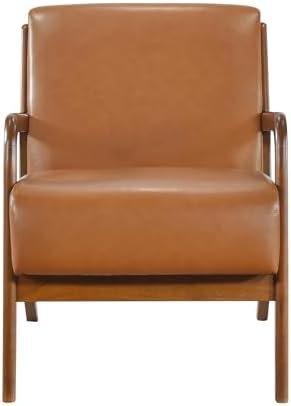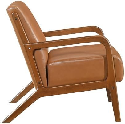 Create a cozy, retro living space with this faux leather accent chair. Featuring curved arms and flared legs, this living room chair gets inspiration from the mid-century modern design. The cognac faux leather upholstery perfectly complements the dark walnut legs for a warm and welcoming feeling, which makes the lounge chair more chic and stylish. To bring you ultra comfort, the club chair seat and backrest are well stuffed with soft and high-density foam, which helps to relieve muscle fatigue after a hard-working day. The cozy chair track arm adds more comfort and aesthetic details. With a sleek and classy look, this armchair fits many spaces, such as the balcony, living room, bedroom, guest reception, office, apartment and more.