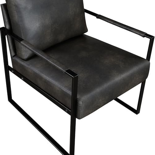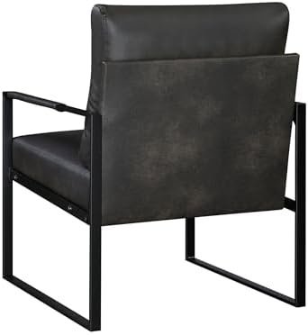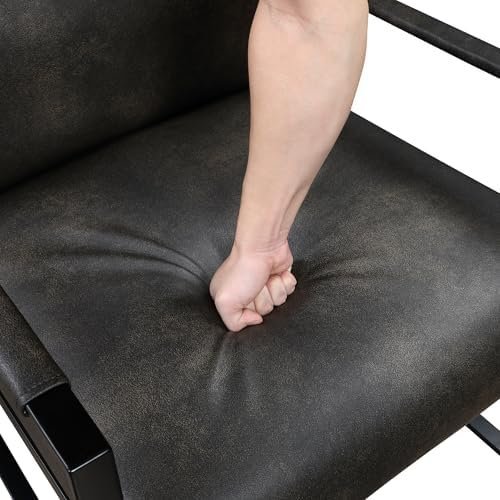 [Mid-Century & Simple Style] This stylish accent chair features an exposed metal frame in a sleek black finish, adding a contemporary edge to any room. Upholstered in dark brown faux leather, it provides both durability and comfort.