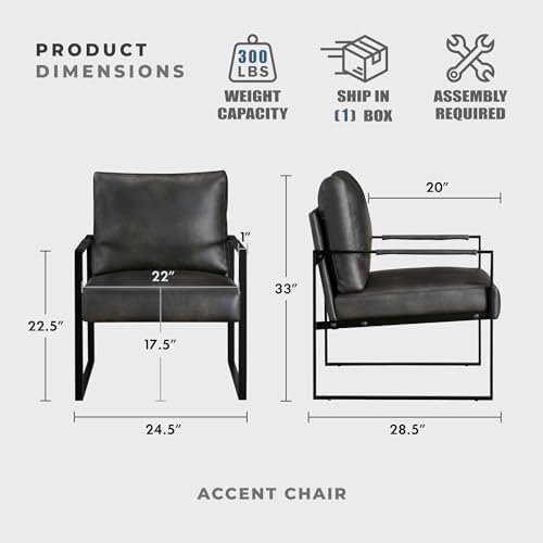 [Perfect Size & Build to Last] Overall size: 24.5″W x 28.5″D x 33″H; Seat Width: 22″; Seat Depth: 20″; Seat Height: 17.5″; Arm height: 22.5″. The chair frame is made of metal with sturdy connection and can support up to 300 lbs