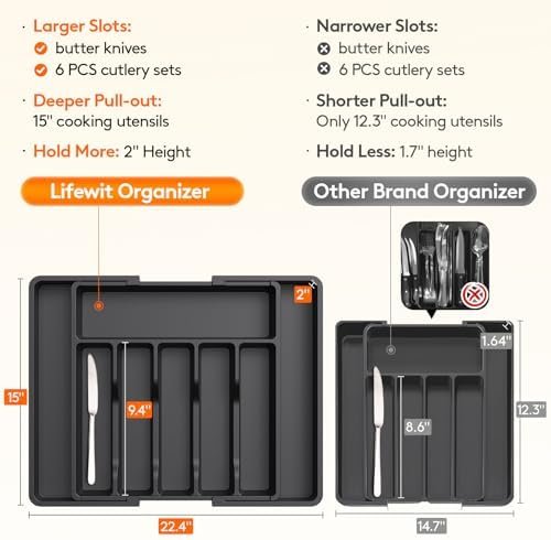 Lifewit Large Silverware Drawer Organizer, Expandable Utensil Tray