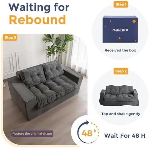 Textured Corded Fabric: Wrapped in premium corduroy, this sofa couch in a box delivers a soft, skin-friendly feel with stylish ribbed texture. Durable and breathable, it’s made to stay plush and beautiful through everyday lounging