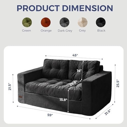 2 Seater Couch for Small Spaces: Measuring 59″ x 31.5″ x 21.5″. Whether you’re lounging, reading, gaming, watching TV, or enjoying a quick nap, this small loveseat provides the perfect spot. Suitable for bedrooms, living rooms, offices, and more