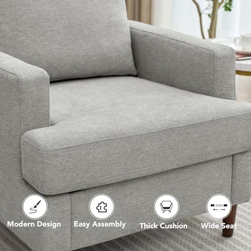 Mid-Century Accent Chair,Modern Linen Fabric Armchair for Living Room