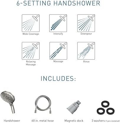 CUSTOMIZE YOUR SHOWER: Multiple distinct shower settings give flexibility and variety with settings: massage, relaxing massage, wide-coverage, rinse, downpour, and intensify
