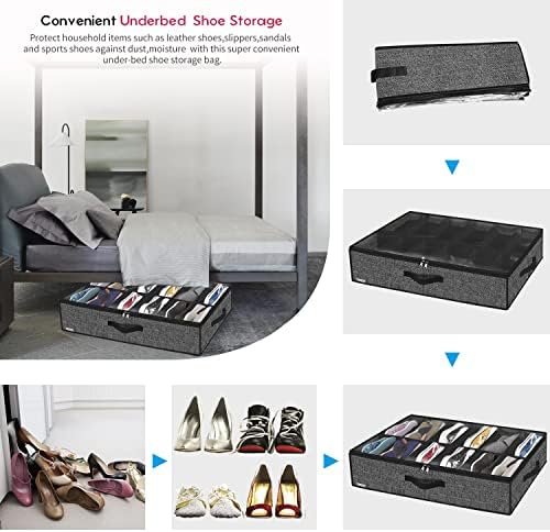 LARGE STORAGE CAPACITY: This shoes under bed organiser set can store up to total 24 pairs of flat shoes or 12 pairs of sneakers with ease. Foldable to save space when not in use. Large size: 29.3″x23.6″x5.9″(74.5x60x15cm), each cell: L11.8″x W4.9″x H5.9″(30×12.4x15cm), more suitable for women and girls.