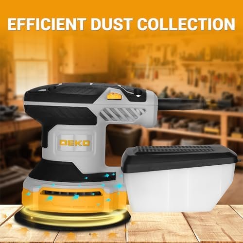 【POWERFUL PERFORMANCE】DEKOPRO 2.5A Orbital Sander is assembled with a powerful DEKO motor that can reach speeds of up to 14,000 RPM, allowing it to provide smooth performance in a variety of sanding applications.