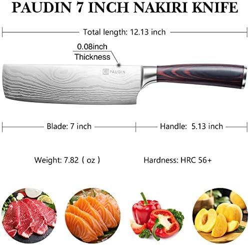 PAUDIN Nakiri Knife – 7″ Razor Sharp Meat Cleaver and Vegetable Kitchen Knife