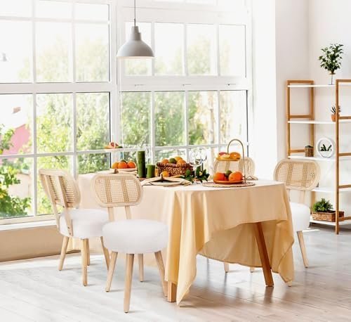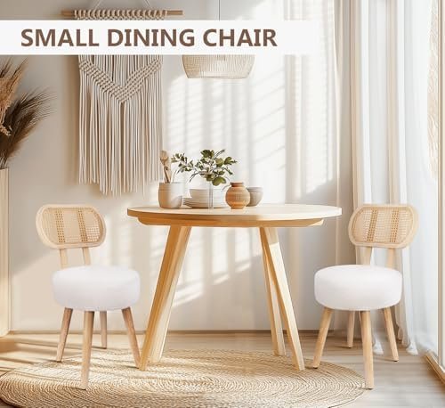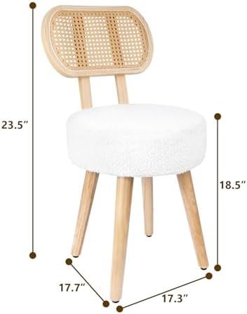 【Renewable Material】 – Natural rattan is artfully hand-woven into this elegant backrest, paired with a high-quality boucle fabric seat filled with high-density foam, quite permeability and comfort, legs are made of solid wood, quite sturdy. The breathable mesh rattan backrest helps ventilate and dissipate heat, keeping it cool and dry to sit on.