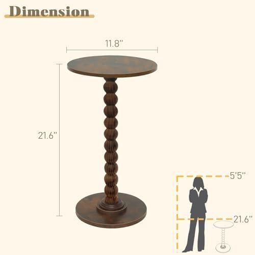 Compact Size: The overall dimensions of this round side table are 11.8”Dia. x 21.6”high. Featuring a compact and lightweight design, the round side table saves space and allows for effortless placement anywhere