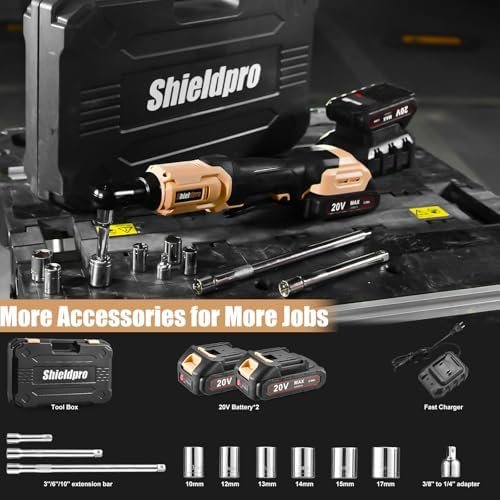 SHIELDPRO 20V Electric Ratchet Wrench Set, 3/8″ Cordless Ratchet Kit