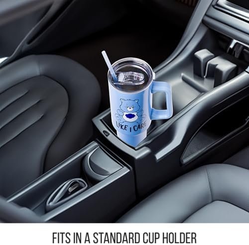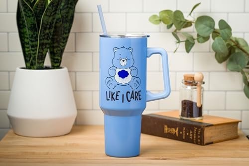 Eliminate the use of single-use plastic bottles and straws with a travel tumbler built with sustainability in mind. Keep drinks cool/hot and join Care Bears with this Grumpy Bear travel tumbler. This double-wall vacuum insulated stainless steel water bottle keeps liquids hot up to 4 hours and cold up to 18 hours. With a generous 40-ounce capacity, these stainless steel tumblers with a handle and a straw are not just vessels for water – they are an expression of passion for the Care Bear Grumpy Bear character and will hold not only water but any favorite beverage. Plus, the enchanting designs on the cup capture the essence of joy, friendship, and timeless nostalgia featuring Grumpy Bear saying “Like I Care.” These high-quality tumblers provide an ideal gift for any fan of Care Bears. Crafted from high-grade stainless steel, these insulated tumblers are more than just eye-catching; they are durable companions for daily adventures keeping drinks at that intended temperature. The sturdy handle ensures a comfortable grip, while the secure lid and convenient straw make sipping a delight. Not only can this tumbler carry 40 ounces of your favorite drink, but it will also keep your morning coffee hot and fit right into a standard-size cup holder. This tumbler is a great Christmas, birthday or housewarming gift for Care Bears fans of all ages. Silver Buffalo provides fans with their favorite official character merch. Working in collaboration with licensors and brands, Silver Buffalo develops unique, creative, and ground-breaking products with a devotion to detail and innovation. Silver Buffalo prides itself on manufacturing and distributing playful products that connect fans with their favorite cartoon characters, superheroes, movies, tv-series and more. Celebrate your fandom!