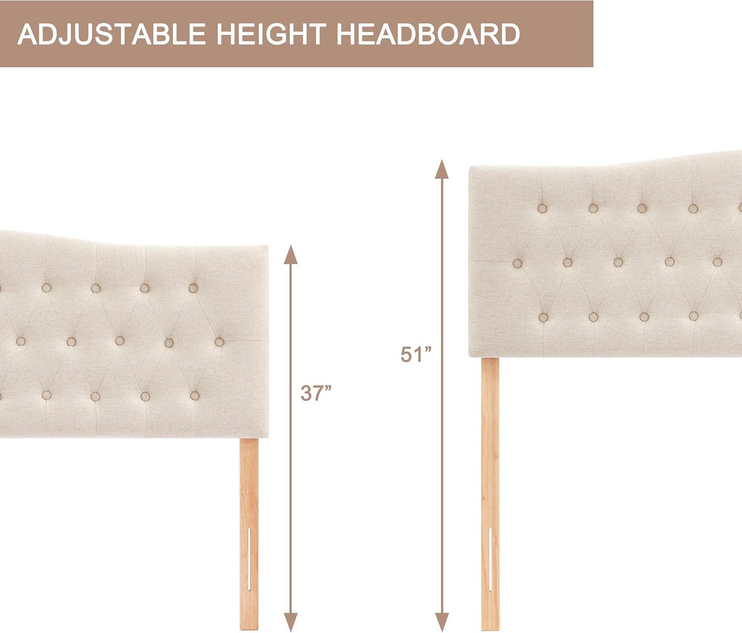 Adjustable Height: It fits all bed frames or most beds, with an adjustable height from 37 to 51 inches. The headboards for adjustable bed adapts various mattress and box spring combinations, allowing you to find the perfect height for a comfortable match