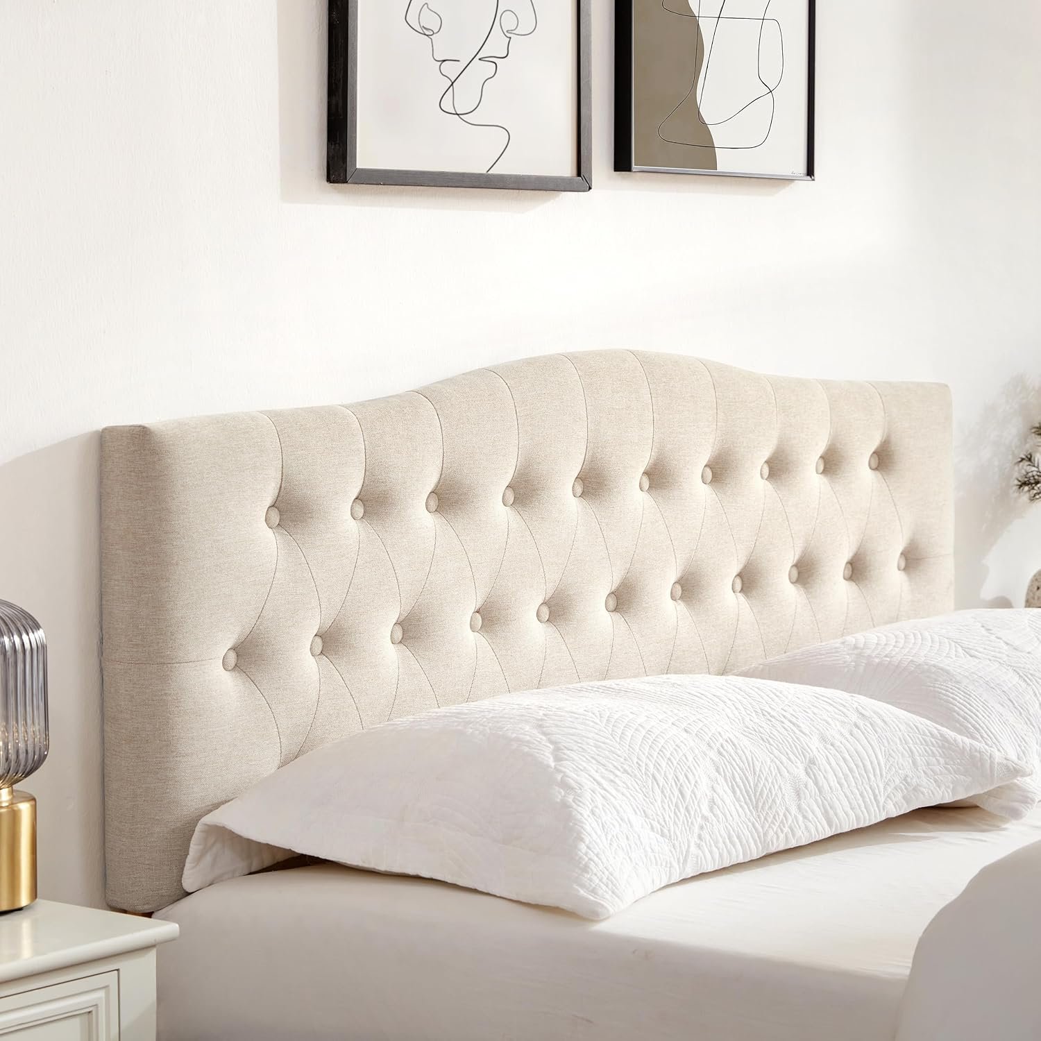 Elegant Design: True aesthetics! The head boards queen smooth curves at the top and exquisite diamond button design bring a unique touch of elegance to your room. This stylish headboard adds warmth and charm to your bedroom, radiating warmth and charm