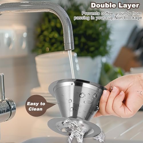Upgraded Pour Over Coffee Filter, Coffee Dripper, Paperless Mess Stainless Steel